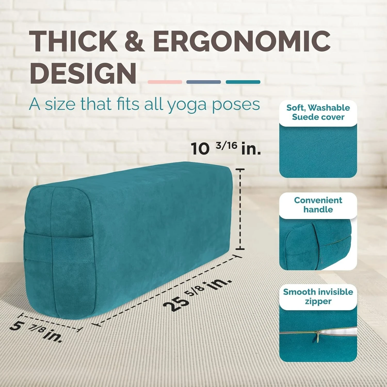 EASY CARE: Yoga cushion bolster comes with a hidden zipper, removable suede cover for effortless cleaning; Smooth cover of this bolster pillow for yoga ensures a seamless look, keeping yoga bolster pillow tidy & ready for all yoga sessions